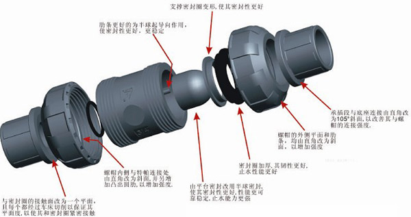 ·6.塑料止回閥與密封圈的接觸面改為一個平面,且每個都經過車床切削以保證其平面度,以使其和密封圈緊密接觸。