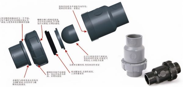 ·2.塑料止回閥由平臺密封改為半球密封,使其密封性好,性能可靠穩(wěn)定,止水能力強。